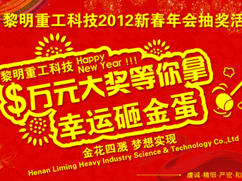 详情点击>>2011年,今年会人戮力同心,奋力拼搏,总体超越了既定目标,取得了令业界瞩目的成绩。4月,公司总部顺利搬迁,办公环境获得极大改善,移动破碎站、立磨、欧版磨粉机等新产品的生产能力进一步提升...[2012-02-02]