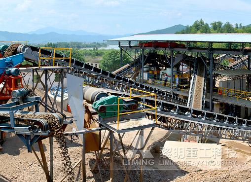 物料通过GZD960×3800振动给料机均匀给料至HPT300液压圆锥破碎机内进行初步破碎,破碎后的物料经由皮带输送机进入直线筛进行筛分,不合格的物料重新被输送到料堆由皮带机送至圆锥破碎机重新破碎,合格的物料由皮带输送机送至两台5X1145制砂机中进行二次破碎,破碎后的物料经皮带机送至圆振动筛进行筛分,合格的物料经洗砂机水洗后由皮带机送至成品料堆,不合格的物料重新返回制砂机破碎,沉淀池中的少量细砂经洗砂回收机处理后送至成品料堆。