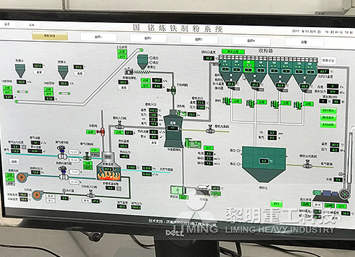 原煤通过封闭式定量给煤机送入LM1700M立式磨煤机,同时来自加热炉的热风在系统风机的抽引下从进风口进入立式磨煤机,与磨内被粉磨的原煤进行充分热交换后,带起煤粉在分离器处进行分选,细度不合格的粗煤粉重新落到磨盘上进行粉磨,细度合格的煤粉随气流进入防爆气箱脉冲收尘器被收集下来,收集后的煤粉成品经出料口并由输送装置送入下一环节进行使用。整个系统在负压状态下运行,系统粉尘不外溢,从而保证现场的清洁。