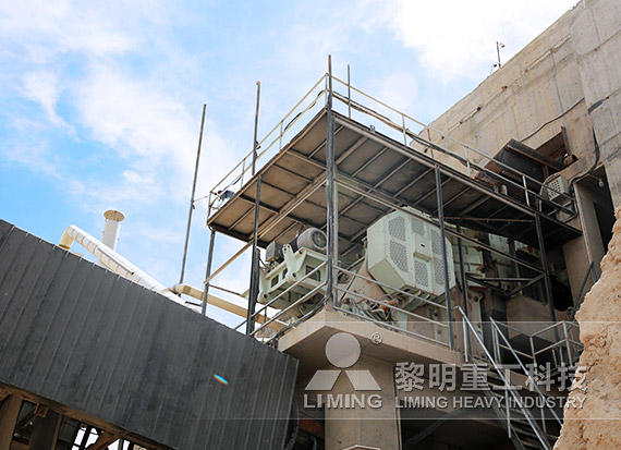 露天开采的长达1m的石灰石经FH2160振动给料机均匀连续地送入两台C6X160颚式破碎机粗碎,然后经由振动给料机输送至齿辊破细碎,由两台3YK3X3075振动筛筛分出40-70mm、70-90mm的石料,这些石料将被输送至MTW218欧版磨,研磨出脱硫石灰石粉。0-40mm的石料将经由皮带输送机输送给另两台3YK3X3075振动筛筛分出20-40mm的成品料,0-20mm的石料将被输送至VSI6X1150制砂机制砂整形,再由3YK3X2675振动筛筛分出0-4.75mm和10-20mm的成品料,4.75mm-10mm的石料被送入VUT120骨料优化系统产出<3.5mm的精品砂。