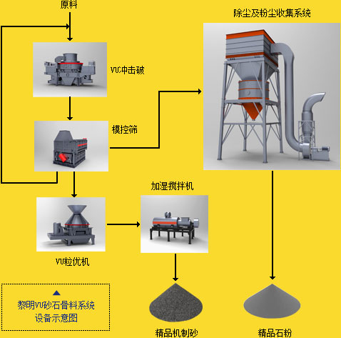VU系统可用廉价易得的尾料、废料、建筑垃圾、"石屑"、"瓜米石"等作为原料,采用环保的干法工艺,生产出媲美天然砂的品质良好机制砂。VU砂符合混凝土用砂标准,可用于搅拌站、干混砂浆、水泥制品厂等配套制砂,骨料矿山配套制砂,大型建工项目配套制砂等,可满足市场对品质良好砂的巨大需求,具有优厚的投资价值,赢得了多方的赞誉和市场的认可。