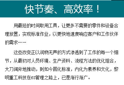 用尽可能短的时间取用工具,让更多不需要的零件和设备合理放置,实现标准作业,以更快地速度响应客户和工作伙伴的需求……