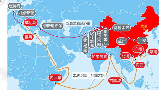 当今社会的“一带一路倡议”是“丝绸之路经济带”和 “21世纪海上丝绸之路”的简称。“一带”:丝绸之路经济带,是打通太平洋到波罗的海运输大道,形成连接东亚、 西亚、南亚的交通运输网路。“一路”:21世纪海上丝绸之路,是串联中国和东南亚国家临海港口城市,以亚欧非经 济贸易一体化为发展长期目标。