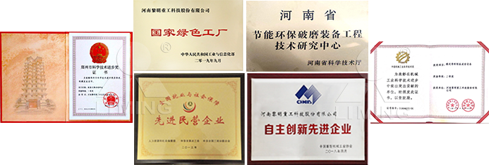 182项国家专利、18项科技成果鉴定、16项国家省市级科技进步奖、中国砂石协会常务理事单位、中国改革开放40年建材机械行业优秀企业、河南省装备制造业协会理事单位、电子商务重点示范企业......