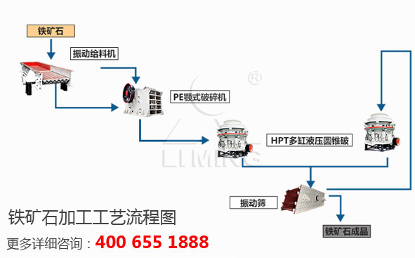 位于东疆的哈密有“西域襟喉,中华拱卫”和“新疆门户”之称,矿产资源丰富,品位高,储量大。其中铁矿预测资源量22.1亿吨,探明储量3.8亿吨,保有资源储量2.44亿吨。该铁矿石破碎生产线为两段破碎,选用一台PE750×1060颚式破碎机和两台HPT300液压圆锥破。颚破用于粗碎流程,减轻后续破碎的压力和后续破碎机的磨损,细碎阶段采用破碎效率高的HPT液压圆锥破,产量超过客户预期。